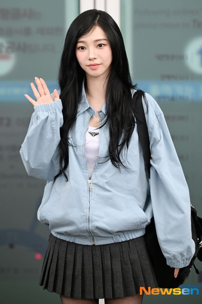 에스파 카리나 ‘밀라노 여신의 손인사’[포토엔HD][인천공항(영종도)=뉴스엔 지수진 기자]