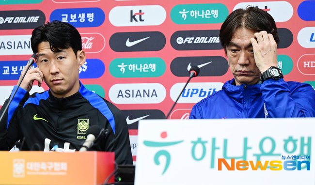 한국 축구대표팀 홍명보 감독,손흥민 선수 공식 기자회견이 10월9일 오후 서울 마포구 상암동 서울월드컵경기장에서 진행됐다