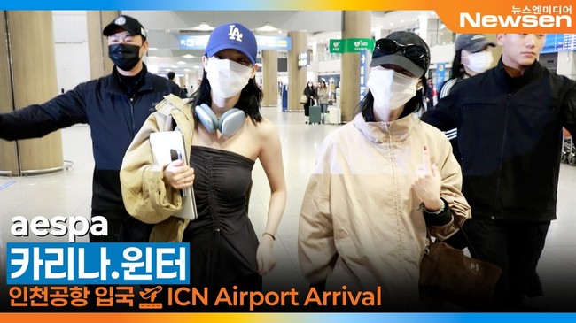 에스파 ‘카리나·윈터’, 이른 새벽 ‘지민정’과 함께~🥰설렘으로 시작한 하루(입국)[뉴스엔TV][인천국제공항=뉴스엔 김기태 기자]